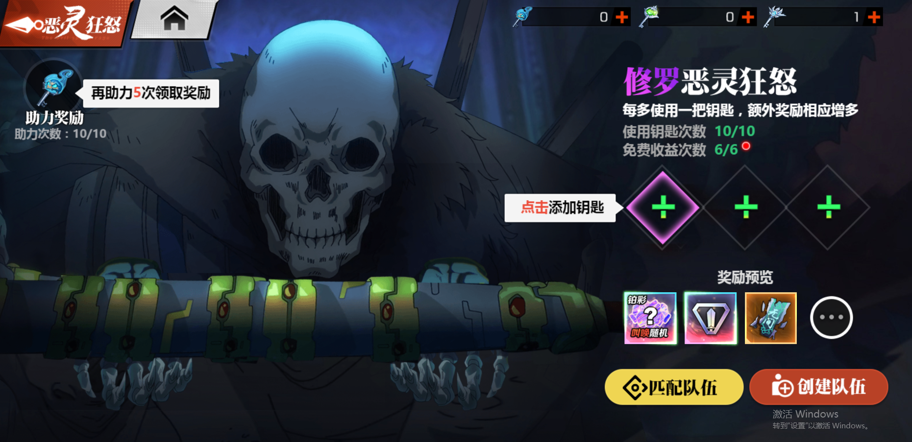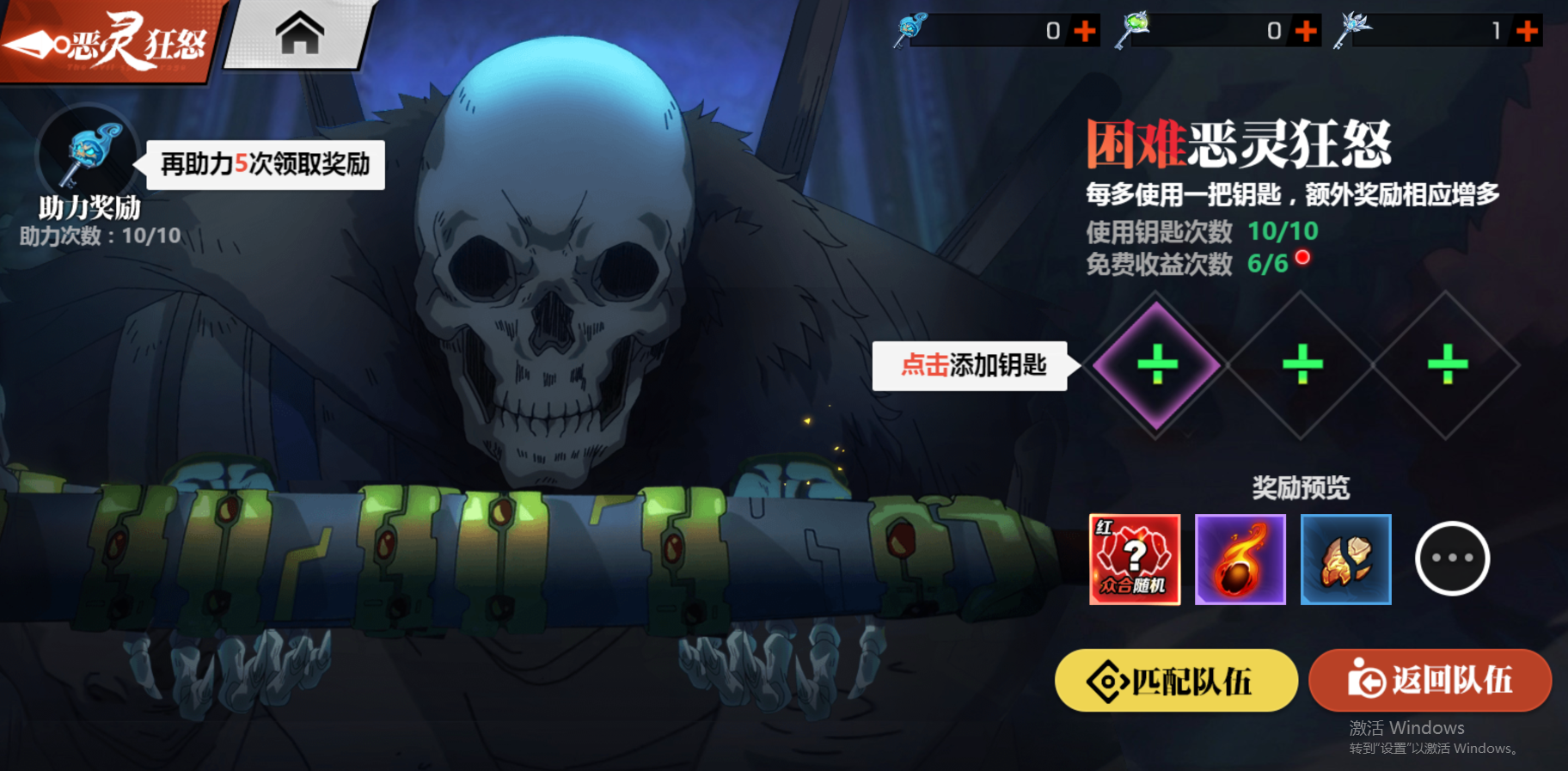 恶灵狂怒副本中,玩家当天免费次数用完后,再次与他人组队挑战成功,可获得助力值。每次可获得1点助力值,助力值进度达标可领取奖励,助力值上限为10点,每天5点重置。