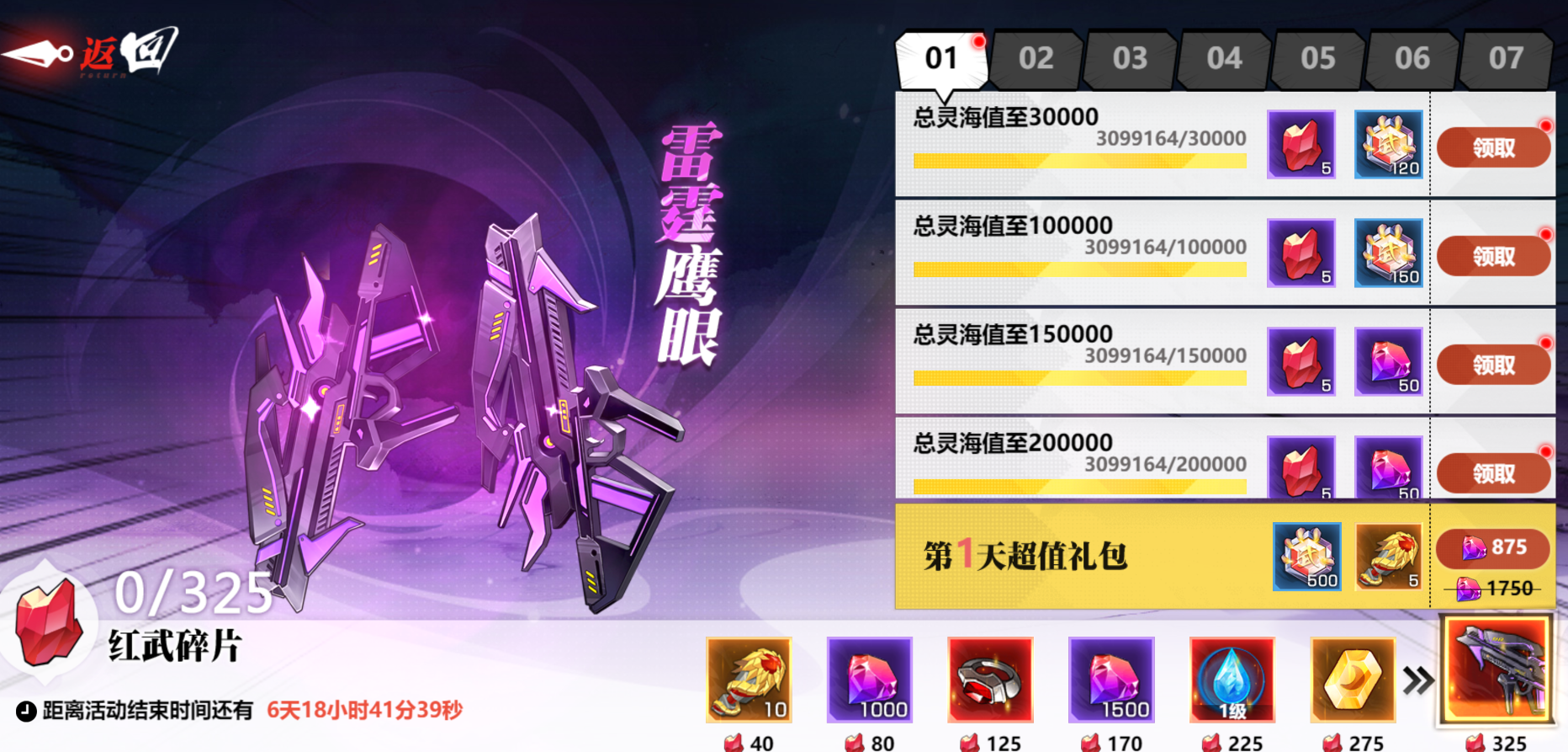 活动五:七日嘉年华,寄灵人们完成7日嘉年华的任务,就可以领取多种好礼及红武碎片,收集红武碎片达到指定数量,即可获得十连抽,红色装备,和终极红装武器。