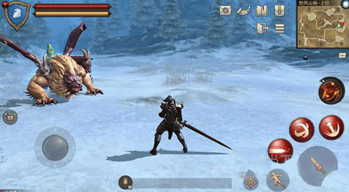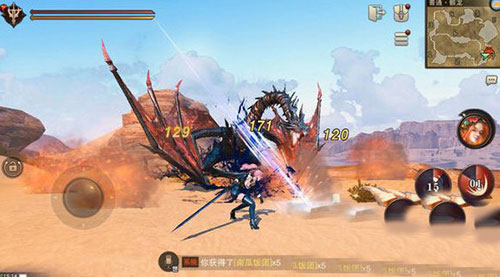 另外,它还有两个小技能,一个就是战斗的时候,会扬起前脚,重踩一下,这样你就会被它震慑,不能动。一个就是会跪下滑过去,这个技能会控制你。它的攻击伤害还可以,就是要注意技能了,不要得意忘形,最终没躲开技能,这样很亏。