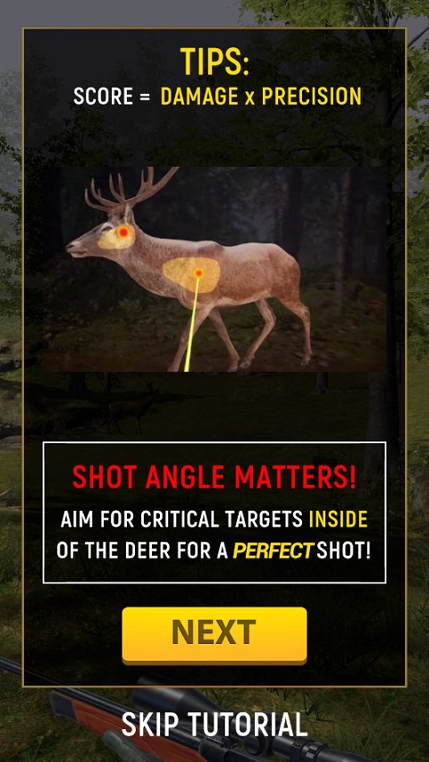 游戏有三大特色:真实动物、武器多样和 controls 顺滑。玩法也很简单,打开游戏后,看到猎物就放大倍镜,瞄准身体部位开枪,特别是心脏和脑部能一击毙命。游戏里还有评分系统,和其他玩家PK,赢了还能获得额外奖励。
