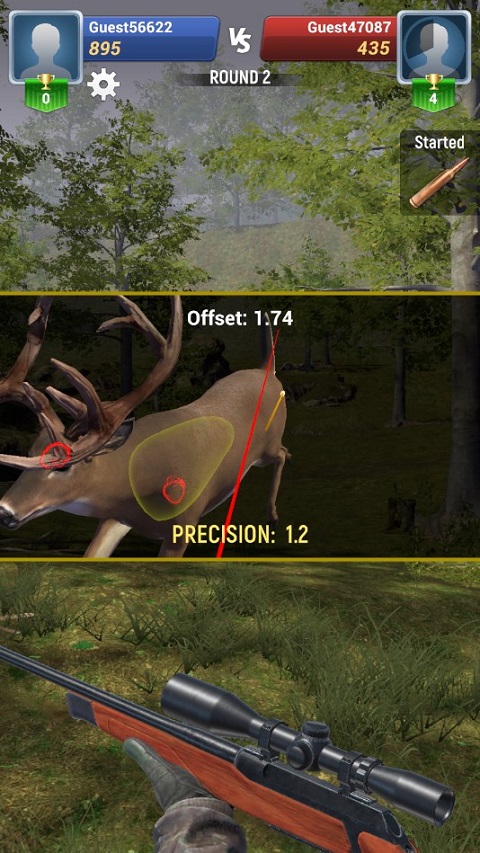 狩猎狙击手最新版是一款非常真实的打猎游戏,英文名也叫Hunting Sniper,在这里你可以来自全球真人玩家同台竞技,比赛分为三局两胜,根据每名玩家狩猎造成的伤害进行计算,得分最高者将获得丰厚奖金!