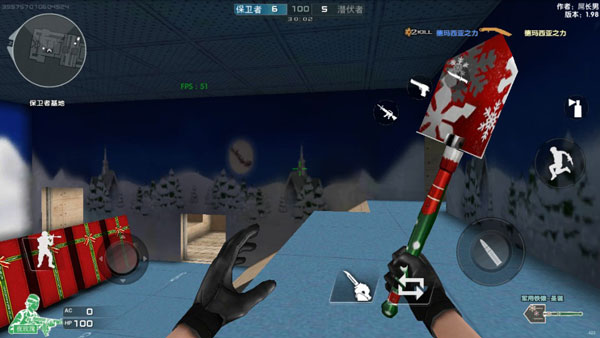 DC怀旧火线是CF忠实玩家“屌长男”自制的一款单机版第一人称射击手游,该游戏依据热门手机游戏“CF穿越火线”所改编,完美继承其独特的枪战玩法,在这里不但拥有丰富多样的武器、角色、道具让你搭配选择,支持运输船、圣诞狂欢、玩具城堡八大地图,兼顾团队、大头、刀战等特色模式,可自由创建的房间,实时的多人战斗玩法,搭配上匹配端游的战斗界面,非常的具有趣味可玩性。DC怀旧火线1.98版本新增武器、以及多张地图,将让你近距离体验到媲美端游的经典CF火线对决的枪战体验。游戏特色