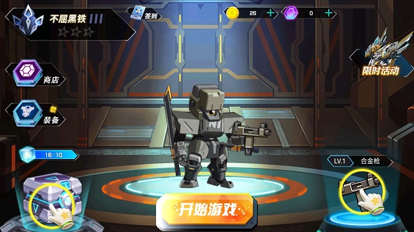 1、玩家可以操纵机甲完成各种精彩操作,花式打败敌人。2、多种机甲装载武器等待玩家合成,不同性能和伤害等你来选。