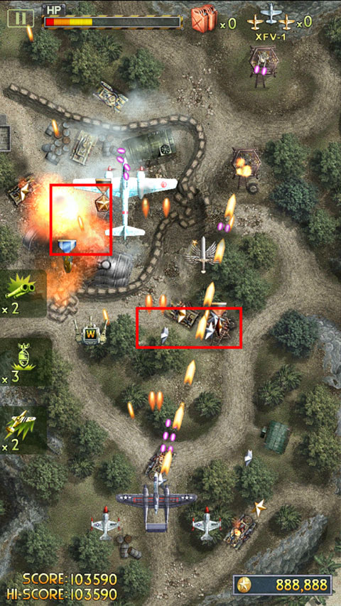 6、来到战场,需要与对面大量敌机进行战斗,主战机会自动发射炮火;