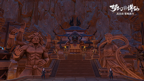 狐岐山巨石嶙峋、山岩险峻,鬼王宗总坛隐匿其中,夜幕下,圣母与天煞雕像矗立,荧光幽深,尽显瑰异诡谲之感。这片土地有四灵血阵的诡谲,也有鬼王和小痴的爱情故事。