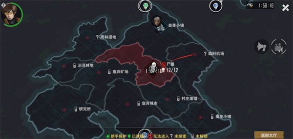 确认完目标后,各位幸存者就可以根据目标去其他区域探索了,走到当前地图边缘,系统会跳出“世界地图”界面,各位可以选择较近的地图进行探索和人物营救。如果有些地图无法进入,是需要各位幸存者在该区建造“瞭望塔”以后才能进行探索。“瞭望塔”是有相应冷却时间,每次冷却后会开出一个新的探索区域。各位幸存者可以通过游戏内消息获取新区域开启通知。