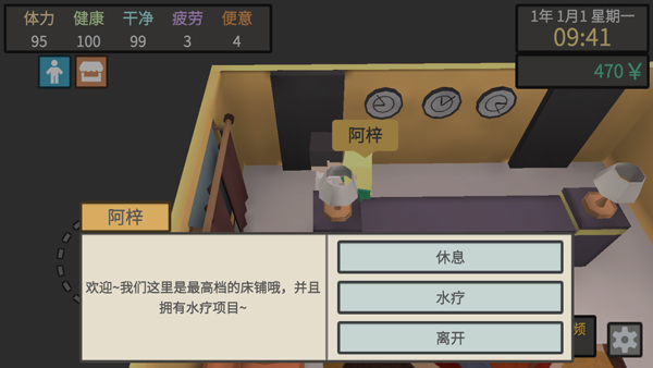 出生地可以洗澡拉粑粑至于玩泥巴乞讨的bug还没修复,你离开那个地方的时候,要记住回去时候的样,不然你就路痴了,然后到最近距离的超市兼职,兼完职到那个公园,有三个长椅,先不急,那里有个垃圾桶,翻垃圾大概率有薯片,然后你,就休息奥利给要,凑到100,方便释放一下奥利给,然后,回去,释放洗澡,然后重复那样,如果体力不够,把超市工作拉满,就再去歇一下,再工作,记住,工作只满300店员然后工作只满1500去餐厅然后反反复复。
