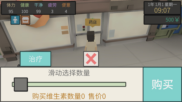 6、如果健康度过低,玩家可前往药店购买维生素等药品;