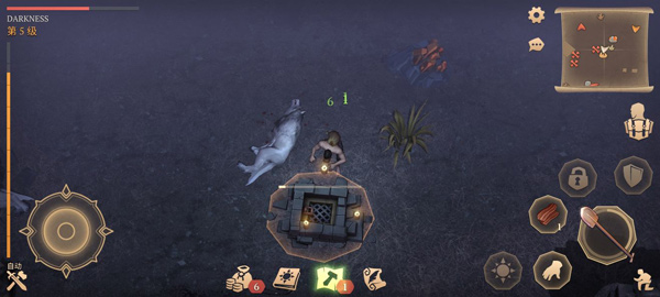 4、高度自由探索玩法,寻找更多资源,制作防身工具,时刻提防外敌,你还需要建造安全基地,白天外出狩猎、收集,晚上基地休息补充能力。