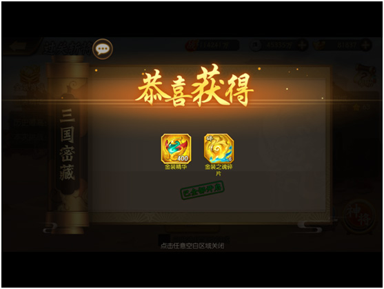 9.军营远征:军营远征每关都有元宝奖励,六个全开以后,每天远征可以获取50-100元宝左右。