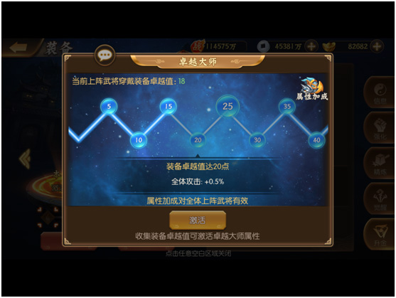 最后,装备升金系统也更新了专属的卓越大师,类似于传记系统,但整体属性加成偏向于基础加成,伤害加成和伤害减免较少。所以,没有太大均养来专门提升卓越值的必要,还是应该以极限单将为主,优先一套装备升金。