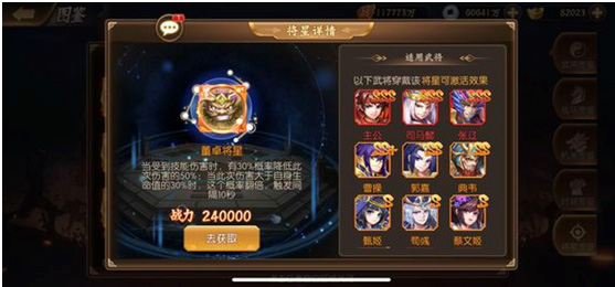说起橙色将星的T2级别,这里最想吐槽的就是董卓将星。面板介绍看起来相当美好,实际效果惨不忍睹,减伤这个效果生效的技能伤害完全不定性,很可能对面前排的一个小技能就把董卓将星的效果给打了出来,实战过于中庸。