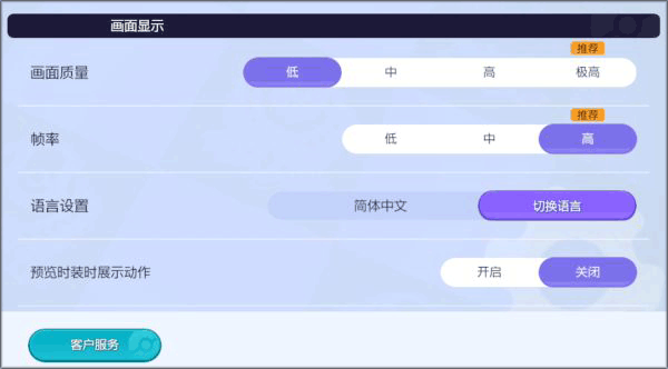 画面质量:根据你的手机性能,如果是老手机就用低,最新的旗舰机就可以直接开到极高。