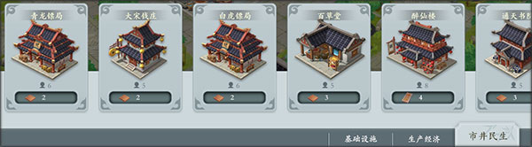 - 早期优先发展鼓楼、工坊和天工开物;中期解锁镖局、演武堂等核心建筑;后期注重任务建筑和功能性建筑的升級。