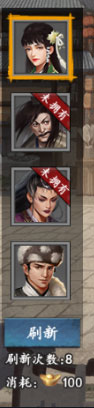 3、可以使用刷新重新刷新四名侠客。