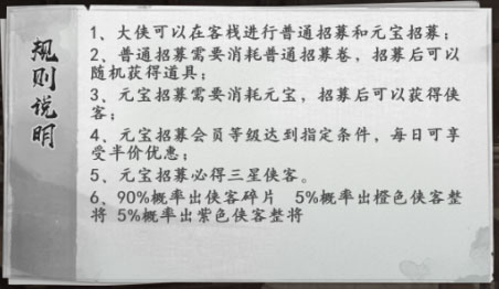 2、大侠可以在客栈进行普通招募和元宝招募;