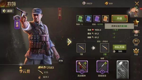 1、调兵遣将~将领的征召和培养是战胜敌军的基础,名将在手,逢敌亮剑,战无不胜,攻无不克。各位长官开局即可获得步兵的两位 核心将领,分别是独立团团长李云龙、独立团一营长张大彪。