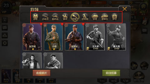 战斗系统允许玩家搭配不同将领和兵种进行策略性对战,自由指挥部队并释放战术技能。游戏中的士兵种类多样,如步兵、骑兵、重机枪兵等,每种都有独特的战斗方式,这让战斗过程充满变化和乐趣。