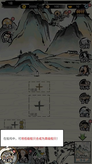 我在古代有船队手机版是一款以国风打造的放置模拟经营类游戏,游戏中玩家的主要任务就是经商,不同于以往的“商战”题材,这次的经商背景放在了古代,并且运输方式和路线以水路为主。游戏初期,玩家首要完成的便是购买船只,其中同等级相同类型的船只可以通过合成,升级为下一级的高等级船只,提升船只等级不仅能提升远航效率,同时还能增加带货数量,提高利润。接着,在我在古代有船队游戏中随着船队规模的扩大,航道开通就显得格外重要,开通新航道能够完成一些更加稀有商品的交易,部分宝物可以为整个船队带来特殊加成效果哦~当然,想要完成以上的操作离不开船员,游戏里玩家可通过招募,招收新的船员,其中船员品质的区分对于航海贸易的加成也是不容小觑,他们有的善于掌舵,有的善于商贸,有的善于垂钓……以红色品质船员为最优。最后,我在古代有船队游戏还为玩家们提供许多特色玩法,通过对随机事件的处理,可以获得美人、特殊人才和特殊宝物,可叠加使用的属性加成,能够让船队保持最大竞争力,之后你可以收购其他船队,进一步扩大船队规模。