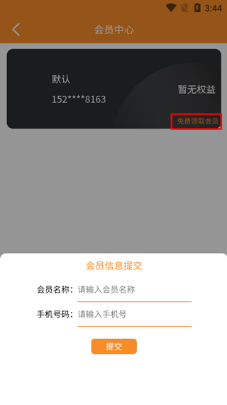 2、点击免费领取会员,输入会员名称以及电话号码就可以成为普通会员