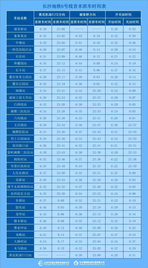 长沙地铁2023运营时间表
