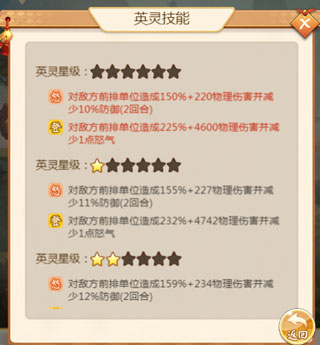 当上阵的武将阵亡后,英灵能够继承武将的属性替代其上阵,英灵升星越高继承武将的百分比越高。(升星所需要消耗的是对应英灵的碎片)
