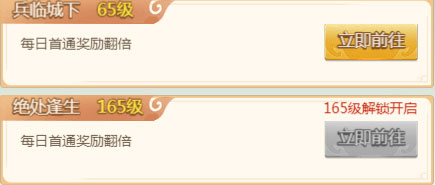 兵临城下和绝处逢生这两个副本,小编放在一起来说,因为他们的相似度非常大,收益是根据你通关次数给的,如兵临大佬把你带通关,平时扫荡可能最多只有2个关羽碎片,双倍活动,扫荡可能出6个,12个。这个双倍的含义,不仅是收益翻倍,刷出大额碎片的概率也是翻倍的,不吹不黑,小编就刷出过两次12个关羽碎片,这个活动收益想最大化,务必要厚脸皮一点,天天逮着大佬带兵临开关卡,等做出关羽,我们就可以翻身做大爷哈哈。
