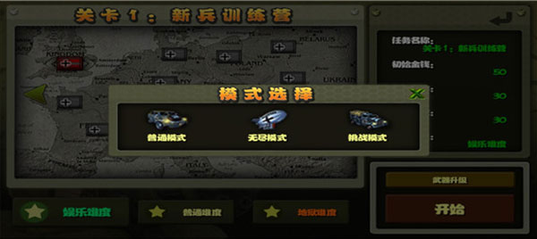 3、游戏中拥有娱乐、普通、地狱三个难度,多种关卡,选择你的游戏难度开始游戏;