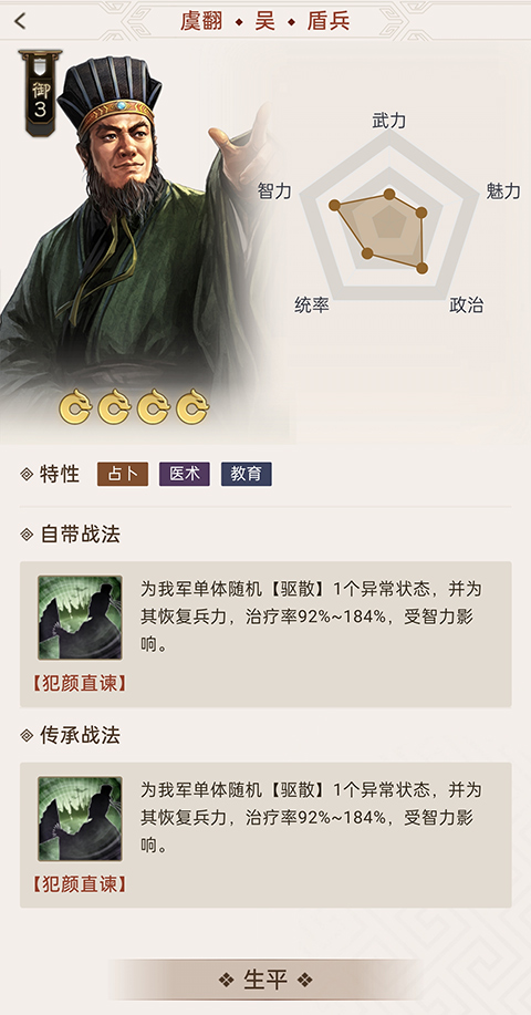 如果你前期没有抽到奶的话,可以拿一个虞翻,可以驱散异常状态还有回血;