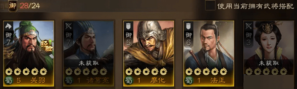 诸葛亮、马超加入后激活五虎将羁绊,可以提升输出能力,张飞的群体减伤和关羽的压制力配合,整体输出比较暴力。