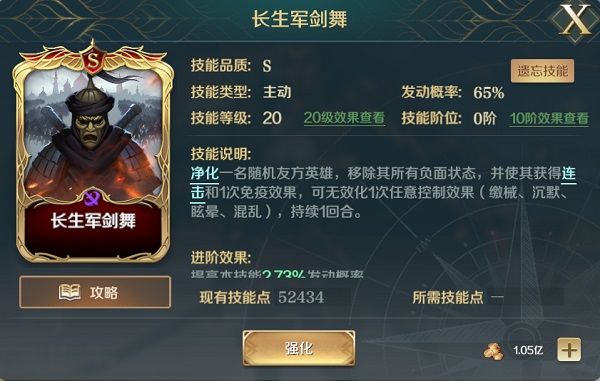 给友军移除负面效果,并施加连击效果和1次免控效果。超高的发动率可以保障突击英雄的输出空间和提高输出能力。