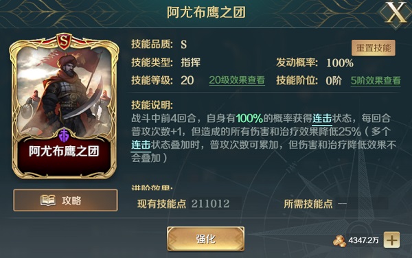 阿金库尔之焰,策反敌将等主动技能。