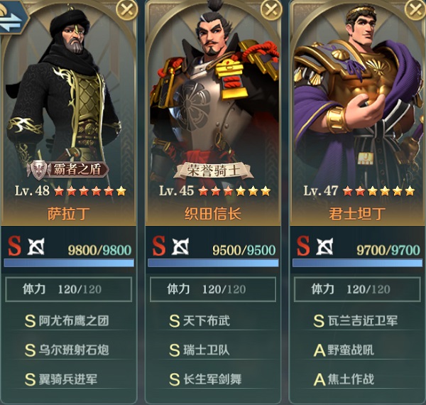 - 核心英雄:织田信长 + 萨拉丁 + 君士坦丁。