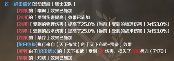 织田嘲讽让敌方承伤增加的同时还能给敌人挂上灼烧效果(铺火)。
