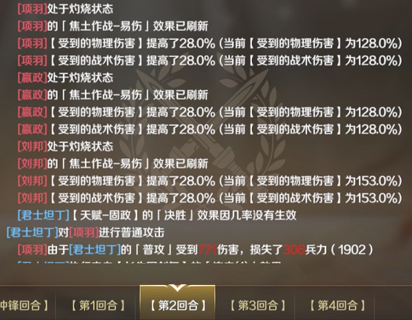 第二回合敌方就全面被挂上灼烧,承伤提供28%。