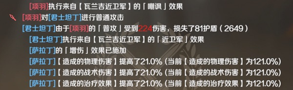 君士坦丁的瓦兰吉近卫军嘲讽敌方,提高友军输出,野蛮战吼全体迅捷,再给萨拉丁增伤。