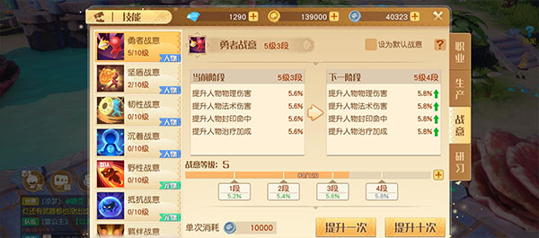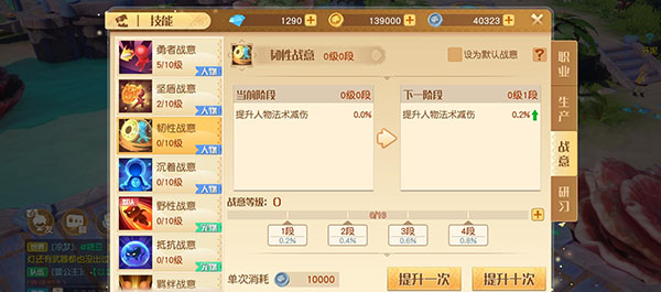 ①战意技能可以大幅提升角色、宠物和伙伴的战斗能力。