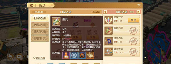1、委托:20级开启,完成委托就可以获得包括体力在内的各种活动奖励;