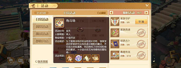 6、角斗场:37级开启,通过角斗场不仅可以磨练自身技艺,同时还可以获得体力等各种奖励。