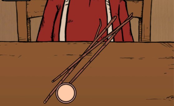 2、首先需要点击食物按钮进入到餐厅当中,然后点击饭桌进入进食界面,再点击界面上的剪刀换成手工界面,然后就可以制作鱼竿,需要制作三次,消耗三个行动的机会。