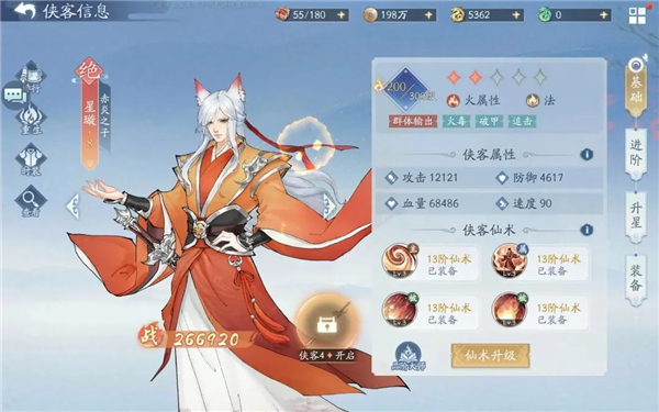 主动技能会将火毒随机分配给敌方全体。被动技能在星璇攻击时触发,攻击带有火毒的敌方侠客时,伤害提高;击杀中火毒者,会使火毒传给其队友。