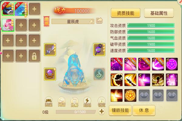最后是圣兽宠物的一个独有养成:宠物飞升。圣兽宠物超越6次后即可进行飞升,宠物飞升后会获得专属的飞升技能和资质的提升,星辰虎作为攻击型宠物,飞升后主要提升的是攻击和破甲的资质,使其伤害又更上一层楼,他专属的飞升技能又可以在降低敌人的攻击力,飞升后的星辰虎实在是能攻能防的全能宠物。