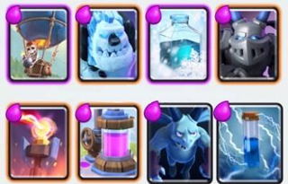冰冻法术气球兵组合可以说是曾经一个无敌一样的存在,狂猛的拆塔速度让无数人无奈崩溃。利用戈仑冰人当肉盾,后面跟前气球兵,然后配合冰冻法术,让气球兵能有更好的拆塔时间,各种消耗对手的建筑;防守时利用亡灵围绕地狱之塔干掉对手的进攻单位;因为卡组的唯一主力输出是气球兵,所以一定要把握好气球兵的进攻时机。