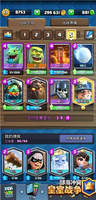 4、收集皇室战争家族成员和您熟悉的《部落冲突》军队,法术和防御建筑等卡牌,打造和升级您的卡组。