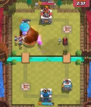 锤子流:野蛮人攻城锤的冲锋能力很强,所以面对这类卡的防守我们可以通过牢笼或者守卫 雪球克制,让其无法接近我们防线。而进攻上在安全状态下使用熔岩猎犬组合平推,即可让对手很难防守。