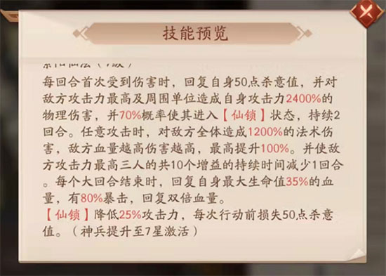 ★有玩家在赤金2出现之后,对于神兵的搭配,表示迷茫:小编龙雀刀作为一件输出类型的神兵,还可以打出压制效果,配一号位武将无可厚非,可赤金2你说是输出核心,为啥要搭配输出作用不明显的羽衣呢?小编想说,这就是对于羽衣神兵没有完全理解的原因。在赤金时代,用攻守来分类神兵已经不再实用,“全能”二字并不只体现在赤金时代的武将上,而是体现在武将,神兽,神兵,战法等一系列产物上。龙雀刀是一个具备明确输出增益的神兵不假,同时也能打出不俗的控制效果,但与其相比,羽衣是一件综合增益的神兵,攻守均衡,提升全面。所谓遇强则强,搭配实力强劲得武将,更能发挥羽衣的优势,相得益彰。如上图,羽衣的反击伤害先不提,携带者的任意攻击会有额外的法术伤害,同时对位的血量越高伤害也越高,搭配赤金2此类输出核心武将使用,事半功倍。与此同时,不管是对于增减益的调节,还是培养恐怖的回血效果,都是庇佑赤金2可以完美持续输出的前提,更不提对于自身攻防的提高,以及对于受到反击伤害的限制。综合来说,羽衣的存在,完美契合赤金2武将的出现。