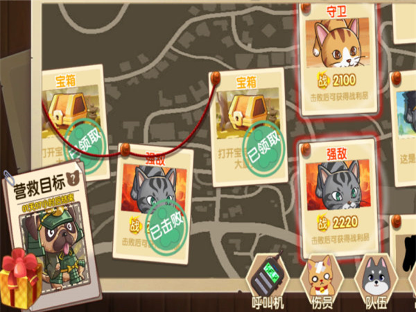 6、最后急救包和伙伴关卡是辅助项的选择,也是迫不得已再去选择的关卡,急救包可以使一名重伤伙伴恢复正常,而伙伴则是随机给予一名英雄动物助战。