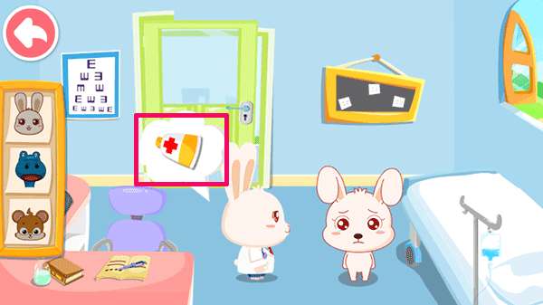 4、根据小动物们的想法,根据提供的道具完成诊疗!