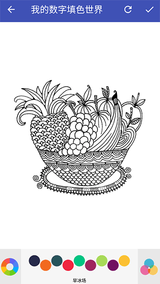 2、然后,在这里可以使用下方的颜色对作品进行填色,接着点击右上角的√键保存;