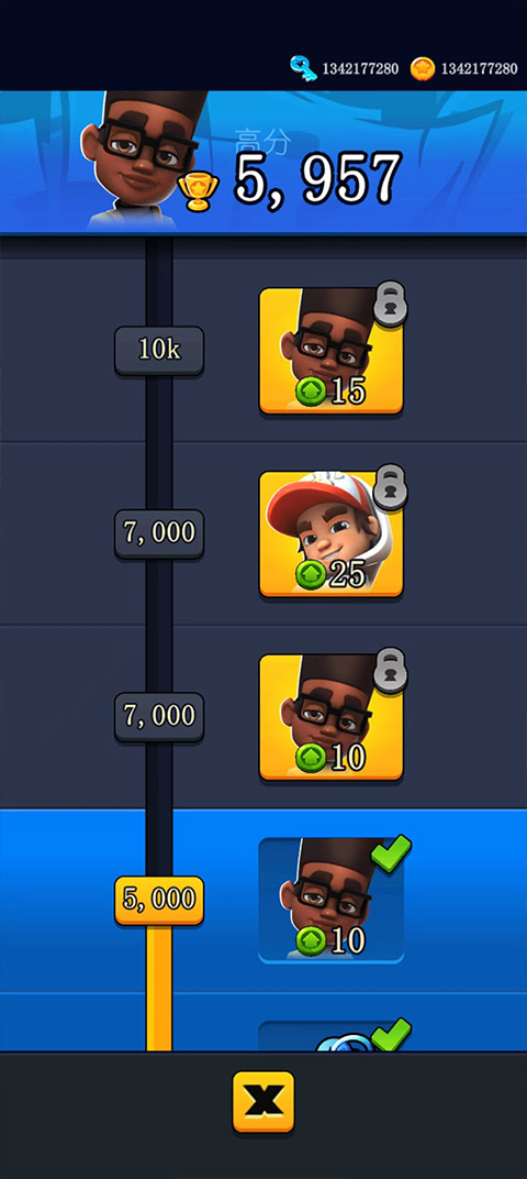 玩家控制角色躲避障碍的同时,还需要尽量的拾取沿途的金币,金币可以用来获取新的角色。